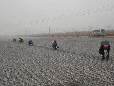 1、土工格柵的鋪設(shè)面應(yīng)較為平整,鋪設(shè)層經(jīng)驗收合格后,為防縱向歪斜現(xiàn)象,先按幅寬在鋪設(shè)層劃出白線或掛線,即可開始鋪設(shè),然后用U型釘固定格柵的端部(每米寬用釘4根,均勻距離固定)。